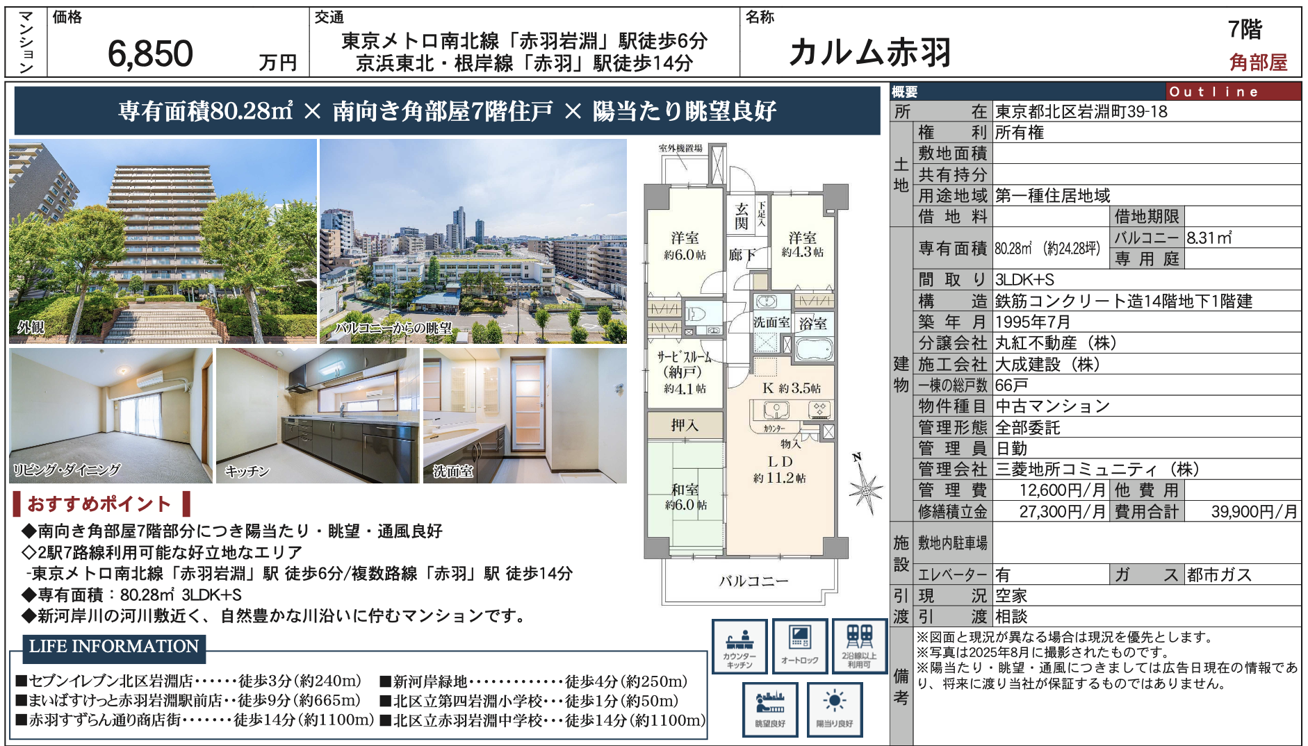 - 東京メトロ南北線「赤羽岩淵」駅 徒歩6分/複数路線「赤羽」駅 徒歩14分
